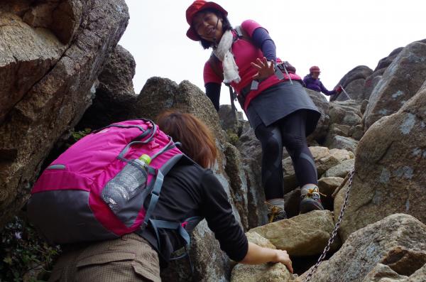 - 上り始めは花崗岩が風化して滑りやすい。登山靴が歩き易い。運動靴は苦労します。