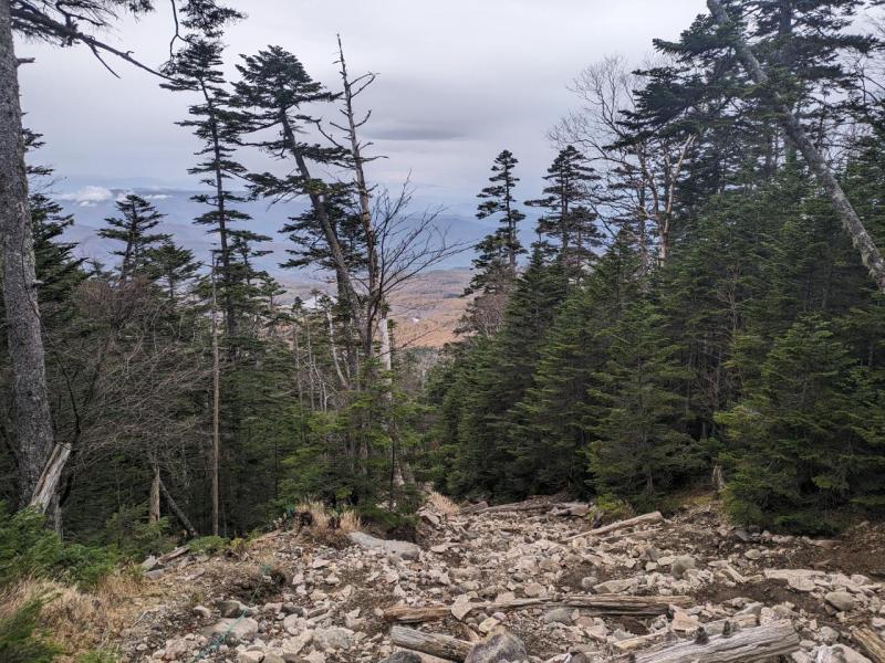 一の谷新道は急勾配の登山道です。ストックはザックにしまったほうが良いでしょう。