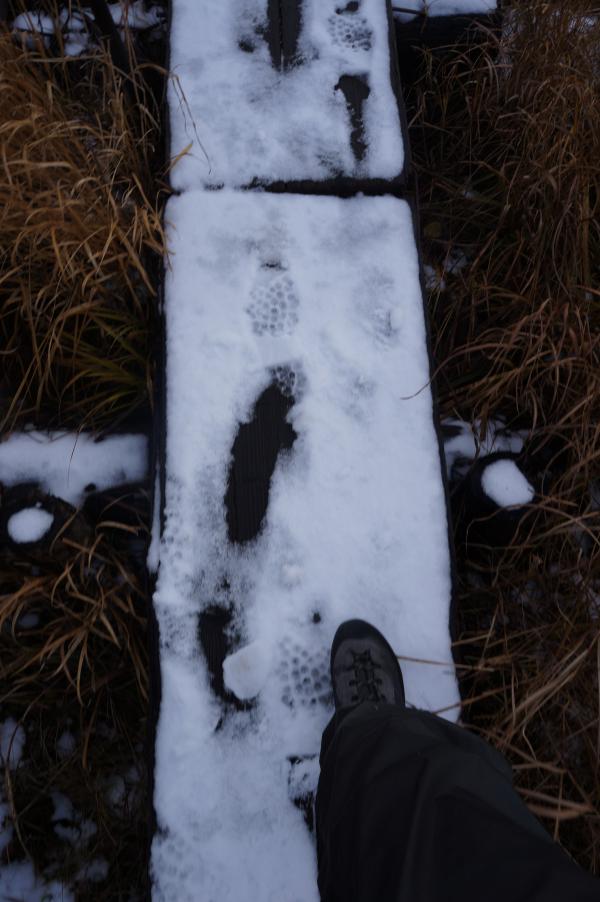 二日目は雪が木道に薄ら積っていました。風も強く、山頂は風が直撃だったと思われます。。。至仏山に途中まで登った方の話だと上の木道は凍ってとけていないとのことでした。
