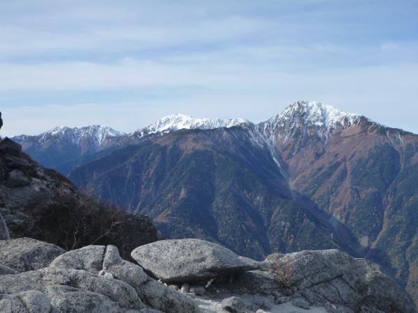 天気には恵まれ、白峰三山や仙丈ヶ岳、甲斐駒ヶ岳、八ヶ岳や蓼科山、富士山などが手に取るように見え、贅沢な景色が眺められたと思います。鳳凰三山自体も、頂上付近に見られる奇岩群の光景に圧倒されたので、またそれを見に来たいと思いました。