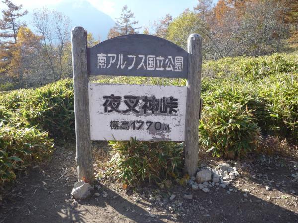 鳳凰小屋-(45分)-岩稜-(30分)-観音岳-(20分)-薬師岳-(40分)-南御室小屋-(30分)-苺平-(50分)-杖立峠-(50分)-夜叉神峠-(35分)-夜叉神峠登山口