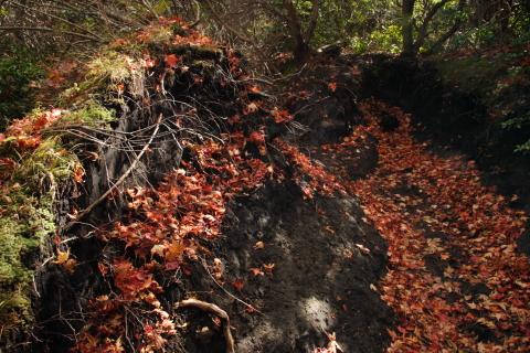 - 大船山は中腹までぬかるんで滑りやすい道ですが、今回は枯れ葉も多く散っていて更に滑りやすかったです。