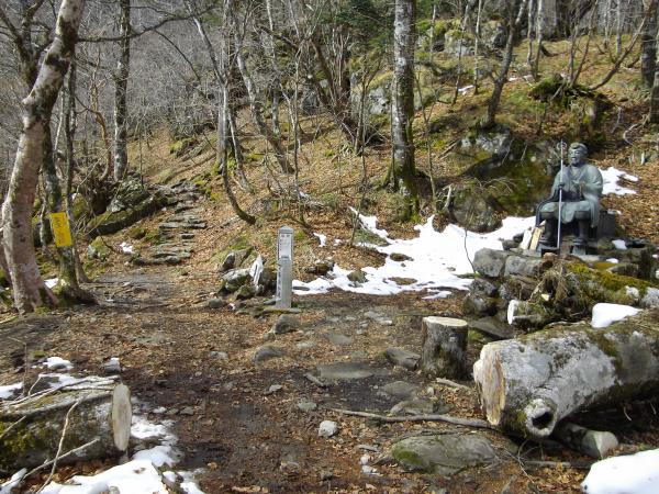 聖宝ノ宿跡より先は雪がけっこうあるので、6本爪の軽アイゼンがあると良い。