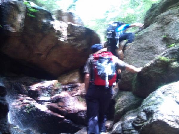 風吹き岩まで行って暑さでバテる事も考えられるので風吹き岩から下る事も出来ます。体調に注意して熱中症には充分にご注意下さい。また、地獄谷は濡れやすいので防水された靴をお勧めします。
