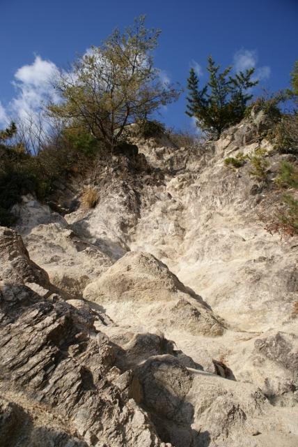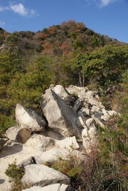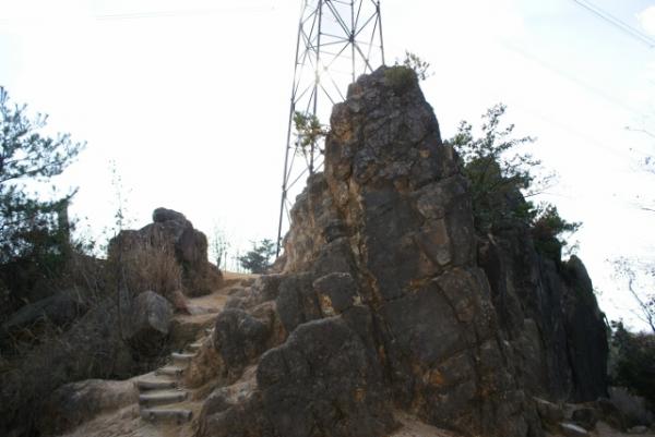 風吹岩からはアップダウンのある樹林帯を高低差で500m程を2時間かけて登ると六甲最高峰(931m)に着きました。山頂は広々としていて山頂直下からは大阪湾まで見渡せます。