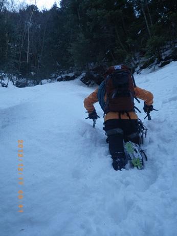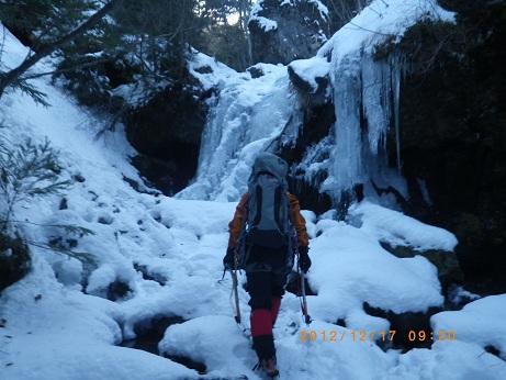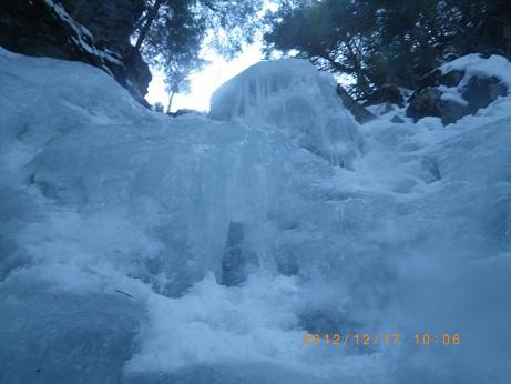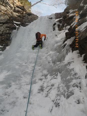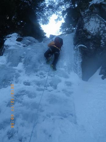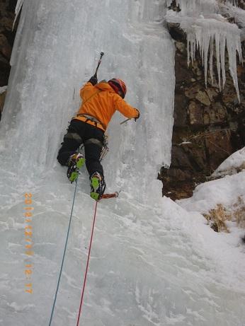 氷は穴だらけの状態ですが、氷結は充分。しっかりのぼれます。