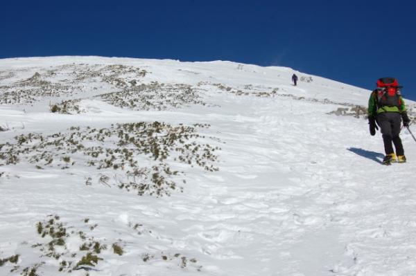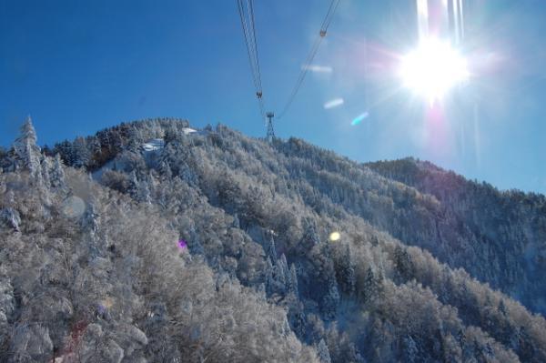 - ロープウェイ乗り場~山荘 しっかりとトレースあり。トレースを外れるとスノーシューを付けていても30センチは埋まります。今回はスノーシューを持ってきたので装着しましたが、アイゼンのほうが歩き易かったと思います。