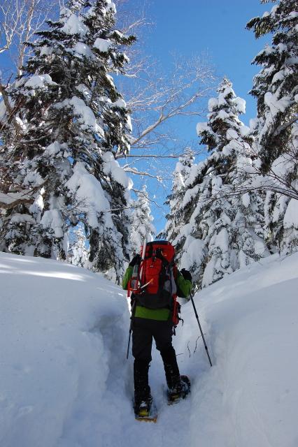 ューで歩きました。トレースの幅がスノーシューで歩くには少々狭かったですが久しぶりのスノーシューハイキングを楽しみました。