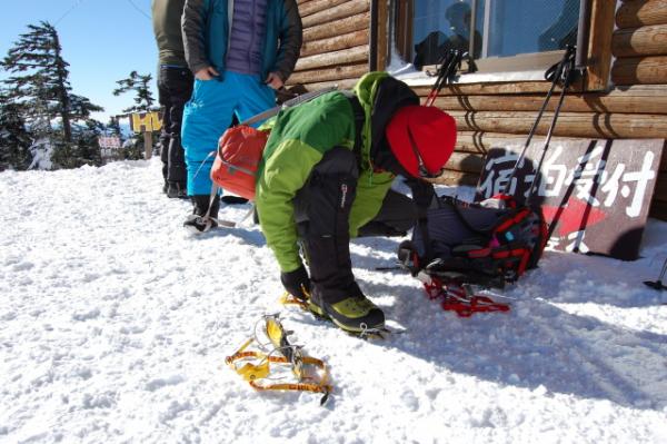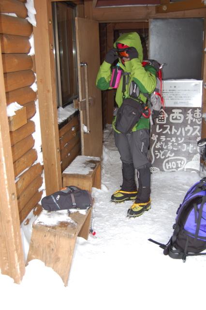 山荘で荷物を軽くし、アイゼン、ピッケルを装備しいざ独標へ!!!