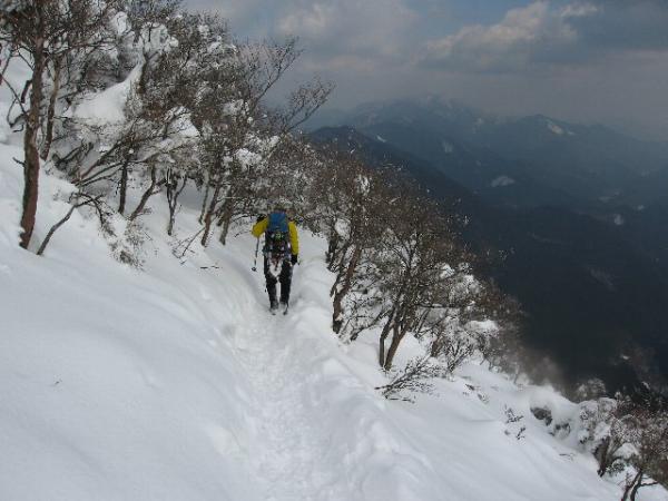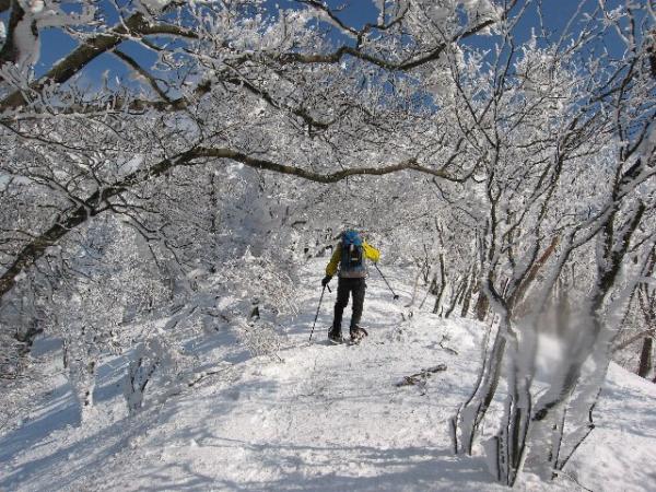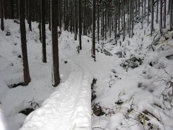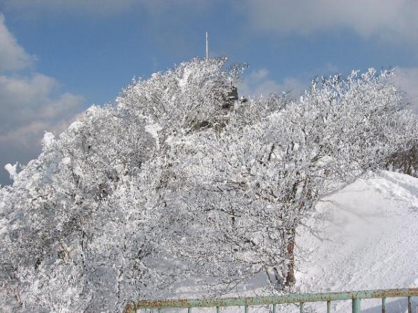 - 2011正月に降った大雪は落ち着きを見せています。登山口から積雪があり、小峠から頂上に向かうにつれ積雪は多くなります。今回、高見山の登山道を一通り歩きましたが全てでトレースがしっかり付いており、アイゼンを履いてしっかり歩けばさほど苦労するところはありません。ところどころ急な登りがあります。