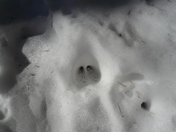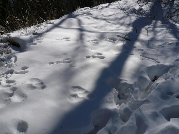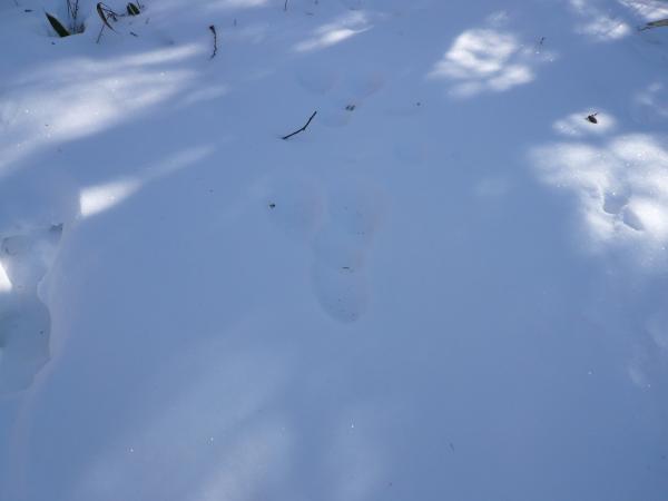 ウサギさんの足跡を見つけ、キツネくんの足跡を見つけ、