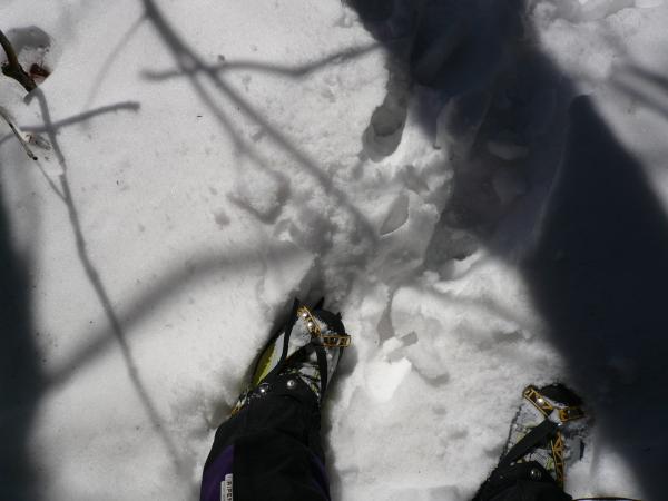 さっきまでつるんこ滑りそうだった雪道が、アイゼンをつけた途端