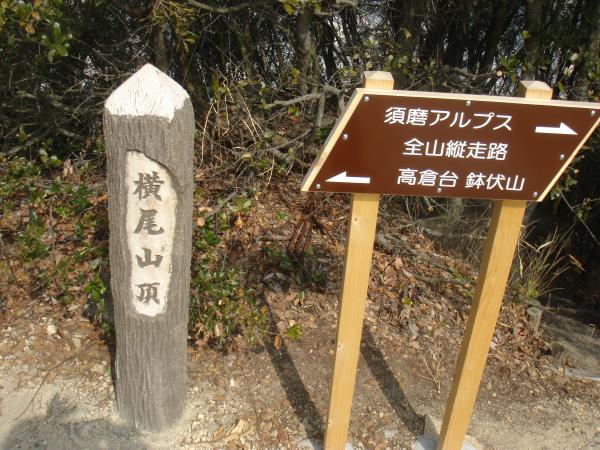 - 08:40山陽須磨浦公園駅出発→09:20旗振山頂→10:50栂尾山頂→11:10横尾山頂→11:35須磨アルプス→12:00昼食→13:40板宿