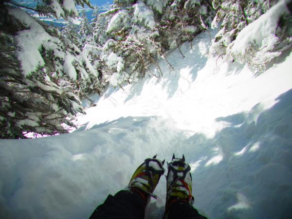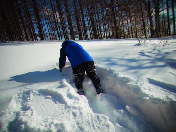 しかし、雪がふかふかすぎて登ってはずり落ちるの繰り返し。