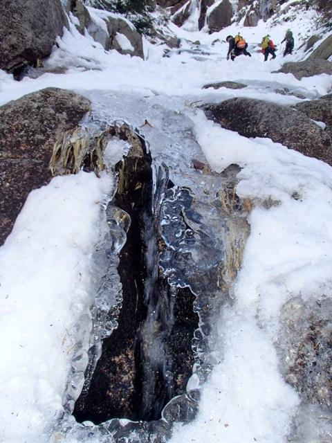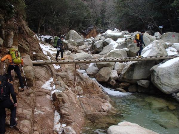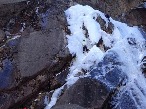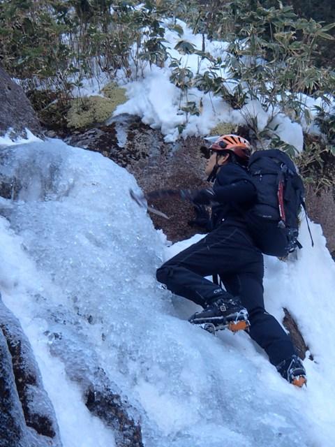 気温が高く氷があるか心配でしたが、薄いもののなんとか楽しめるくらいには張っていました。ただ、マイナスの滝はリードではほぼ登攀不能だったため、巻きました。何とか近道できないかと模索して時間を食ってしまいましたが・・・。