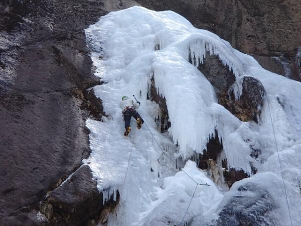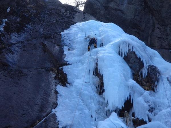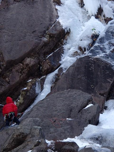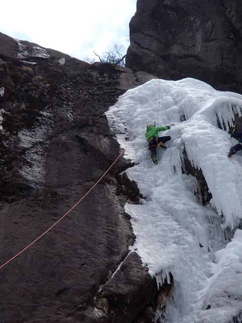 相変わらず、傾斜がキツイところではうまく登れませんでした。一度は足ブラになってフォールしかけてしまいました。もっとうまく登りたいものです。途中、氷瀑中央付近にぶら下がっていた氷柱を壊してしまい、本当に申し訳なかったです。繋がればいいラインだったのですが・・・。