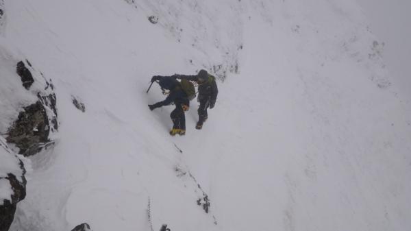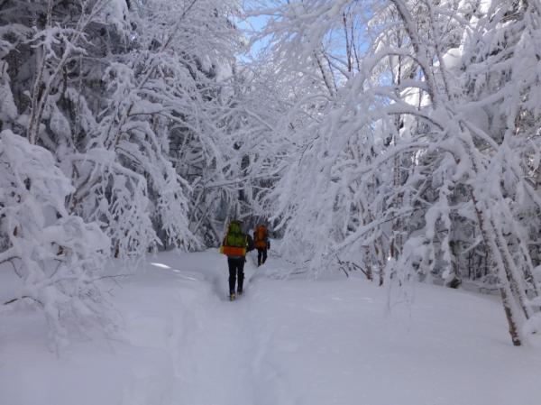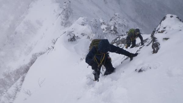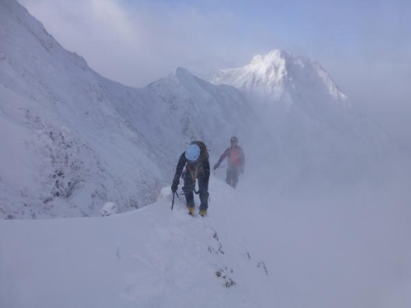 風で前日のトレースが消えてしまうので、ルートファインディングは慎重に行う。