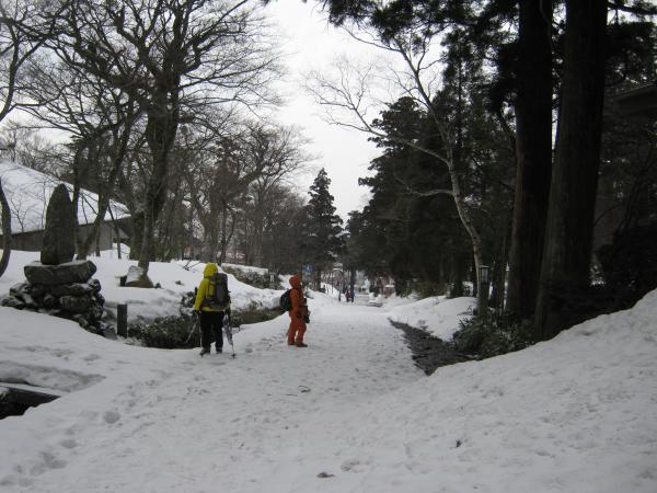 - すでに残雪といった感じですが 寒かったので凍っていました。トレース、足跡が残っていました。