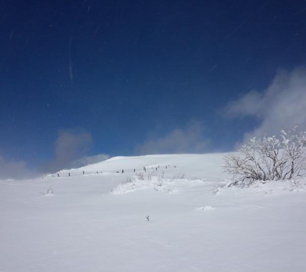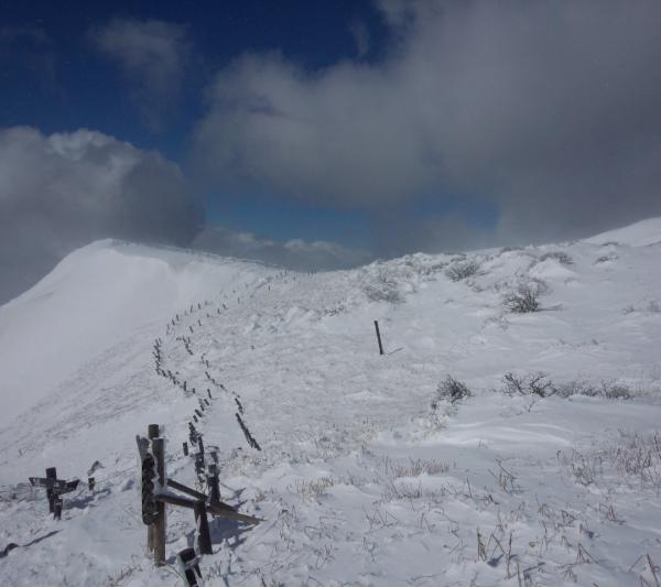 山頂は広い平地。ホワイトアウトするとどこから来たのか分からなくなりそうなので、注意が必要