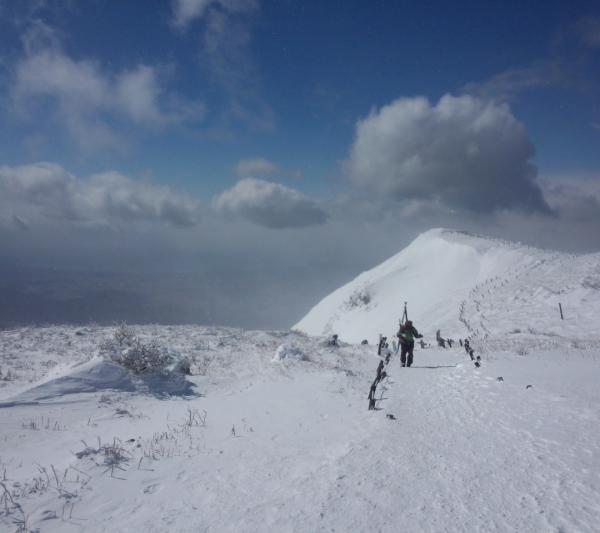 スキーやボードを担いで登っている方もいらっしゃいましたが、あまり楽しく滑れないでしょう。