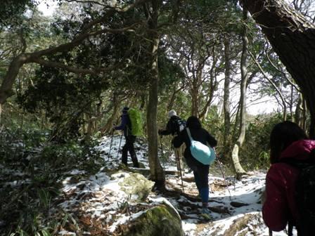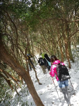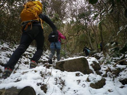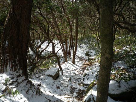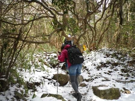 標高が高いところでは雪道になっており気温しだいではアイゼンが必要なので携帯したほうがいい。