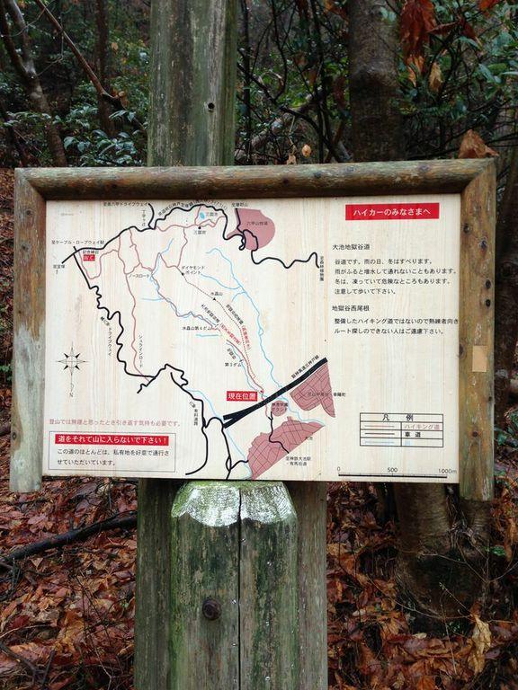 - 大池~(20分)登山口~(10分)西尾根との別れ~(10分)大堰堤~(7分)西尾根との別れ~(30分)水晶山~(30分)登山口