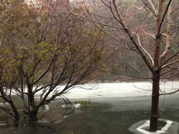 気温が上がったように感じたので、当初は七曲りの滝がどのくらい溶けているか見に行こうと思いましたが、雨のために挫けて自宅から歩いていける地獄谷へ。途中の大堰堤を越えると、登山道は水没して一部凍結しており、急きょ西尾根コースへ。濃いガスで展望は皆無でしたが、歩きやすい道でした。しかし、同じコースを下っていくと道を間違い、藪漕ぎのすえ石楠花谷へ入ってしまいました。ガスが濃い時の下りは注意が必要です。薄い中綿入りのウィンドストッパーでの藪漕ぎはやめましょうね。