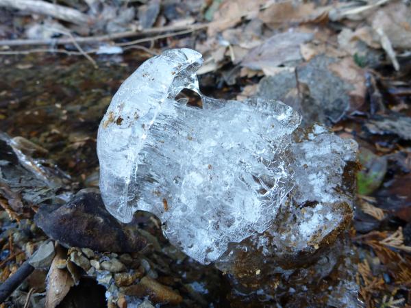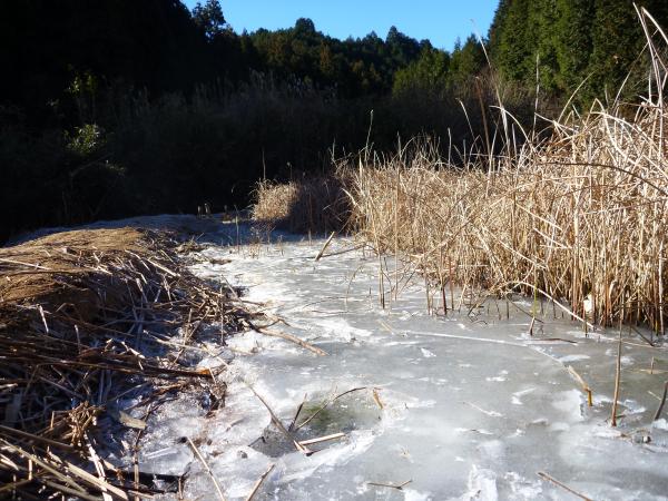 カチカチに凍った水たまりの向こうには沢ガニがじっとしているのが見えたり、