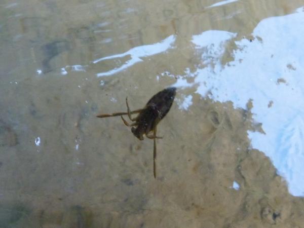 逃げ遅れて氷漬けになってしまったマツモムシをつぶさに観察したりして遊んで