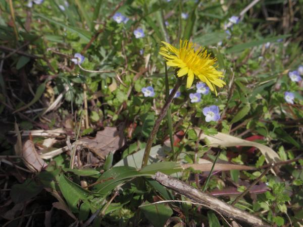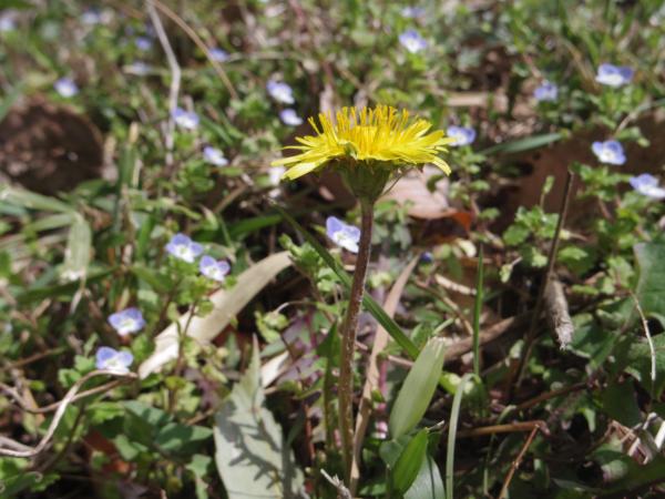道端のタンポポも、よく見るセイヨウタンポポでなく日本固有の