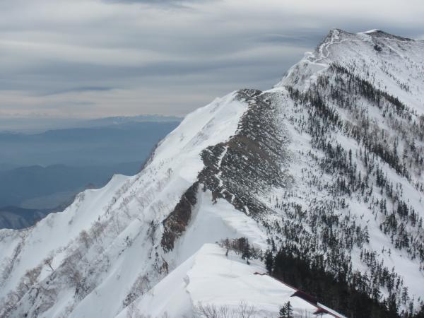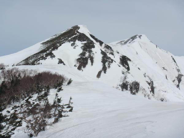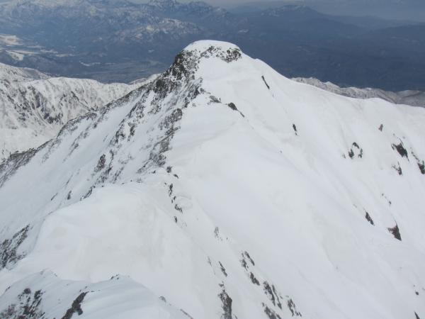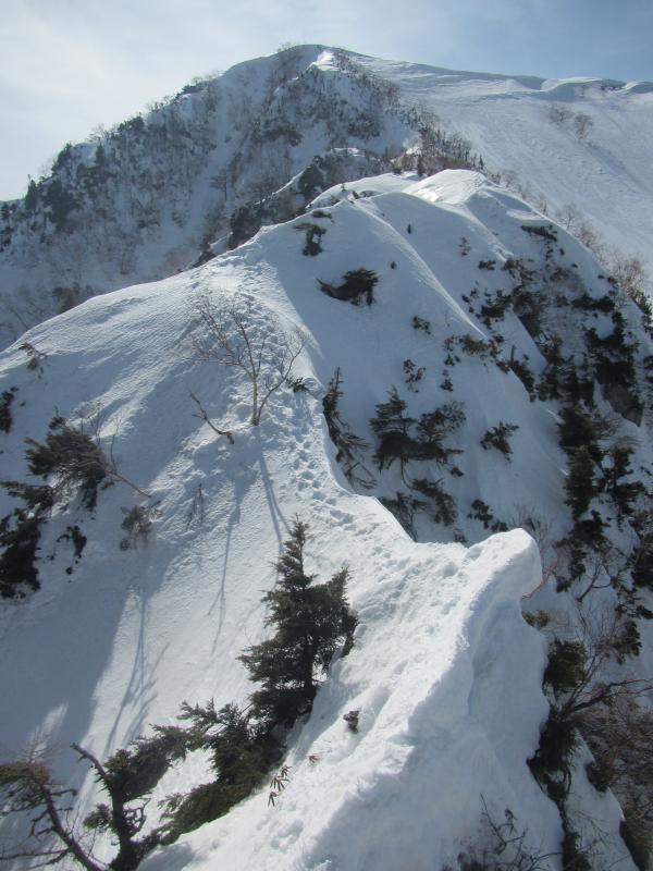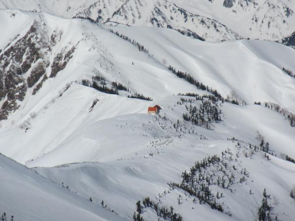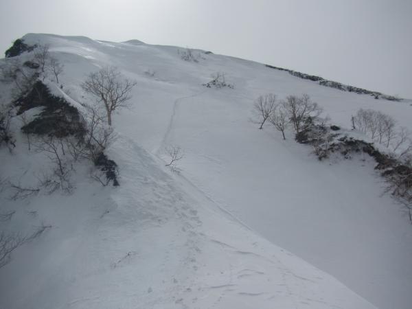 稜線直下の下りが急峻で、上部トラバースでの雪崩に注意する必要があります。