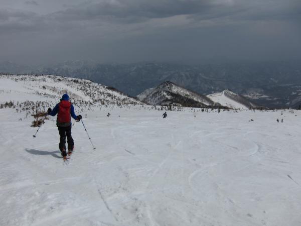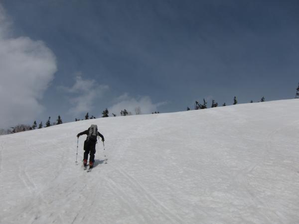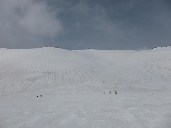 比較的簡単に登れる白馬乗鞍岳の東面を滑って来ました。