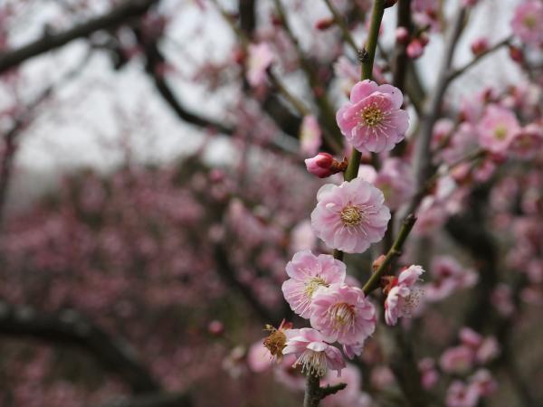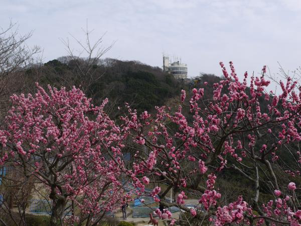 山上遊園の梅林は散りはじめ、紅白の見事な花も今年はこれで見納めの感です。