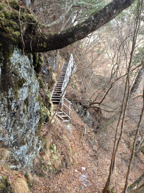 - 道はところどころ崩れていて、赤布などが見落としやすくなっています。この時期だと、凍っている部分もところどころ出てきました。梯子や鎖の前後が凍結していることもあったのでところどころ危険な場所があります。とにかく花粉が凄い場所でした・・・