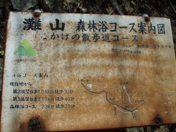 - 畑中・バス停~(35分)~第一展望台~(10分)~灘山~(5分)~第二展望台~(40分)~畑中・バス停