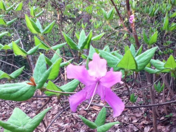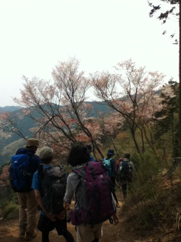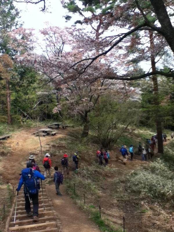 スミレが咲き散りだした山桜の穏やかな登山道を歩けました。JR高尾駅はザックを背負ったたくさんの