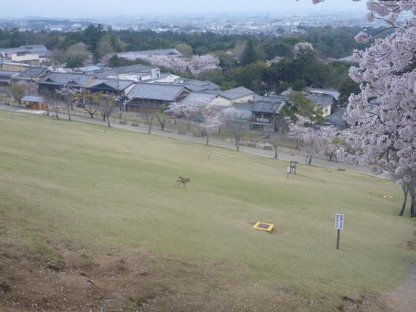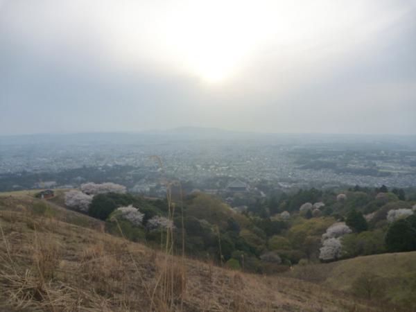 登山中ずっと見える若草山からの景色はすばらしかったです。