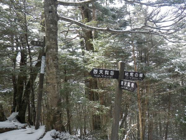 - 唐沢鉱泉==(210分)==東天狗岳==(20分)==西天狗岳==(60分)==黒百合ヒュッテ==(80分)==唐沢鉱泉