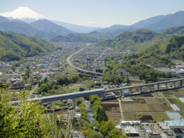 コースとしても面白いです。落合水路橋はレトロですし、登山道は気持ち良いですし。そして山頂からは、大菩薩峠と奥多摩までもが見渡せ、富士山も良い感じです(擬音で言うとバーンッ!とかドーンッ!)。特に池ノ山コースにある天狗岩からの景色が本当に最高!一人分くらいのスペースの岩なのですが、都留市と富士山と三ツ峠山を一望出来るのです。必見です。