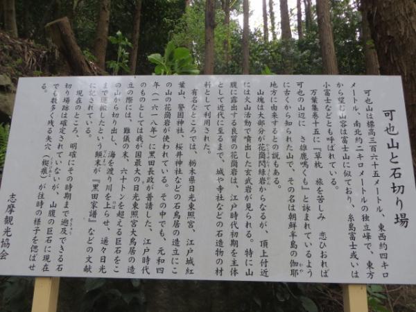 - 糸島市役所志摩庁舎駐車場(15分)可也山登山口(20分)石切り場跡(15分)可也神社(5分)可也山山頂(2分)可也山展望台(25分)可也山登山口(15分)糸島市役所志摩庁舎駐車場 *歩行時間のみ
