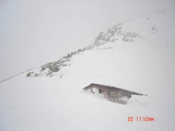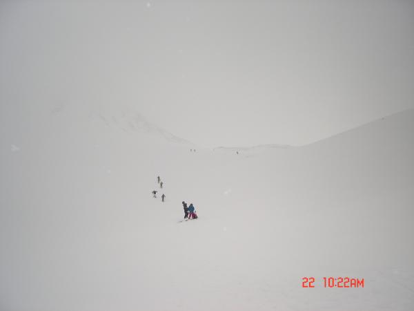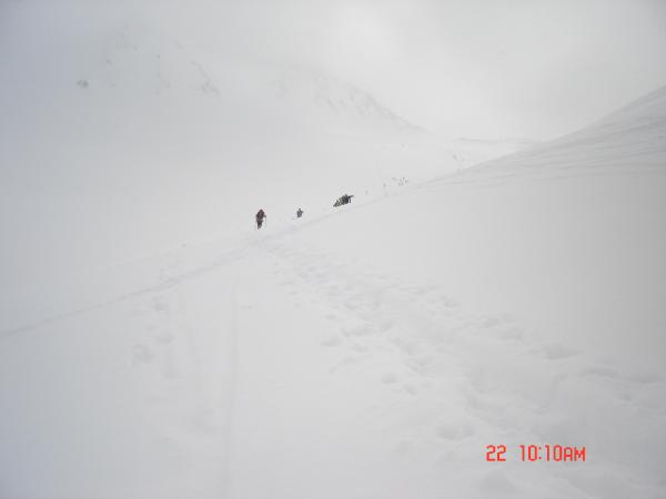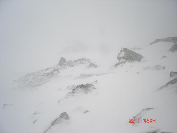 一の越から上は、雪と氷と岩と…真っ白な雪風。