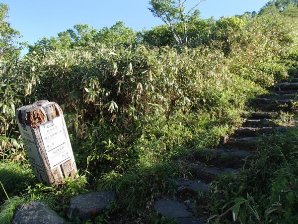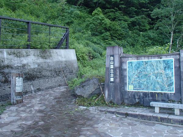 - 別当出合(70分)別当坂分岐(90分)殿ヶ池避難小屋(50分)黒ボコ岩(40分)室堂(40分)御前峰(50分)黒ボコ岩(45分)甚之助避難小屋(85分)別当出合