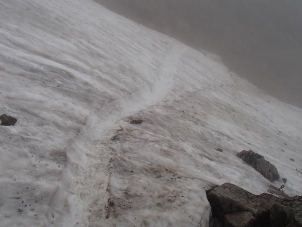砂防新道方面の状況は十二曲り下から南竜分岐まで雪があります。沢を横切る箇所は小屋の方々が足場を付けてくれていますが、この時期雪渓と登山道との境目は要注意です、日々薄く脆くなっていくので踏み抜きによる転倒などお気を付け下さい。南竜分岐から甚之助避難小屋手前までも雪があります、この箇所はルートに注意が必要です、赤布が少し目線より高い位置に付けてくれています。