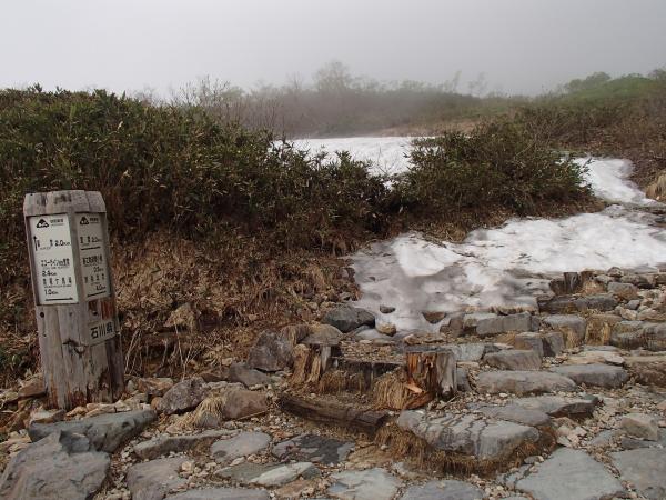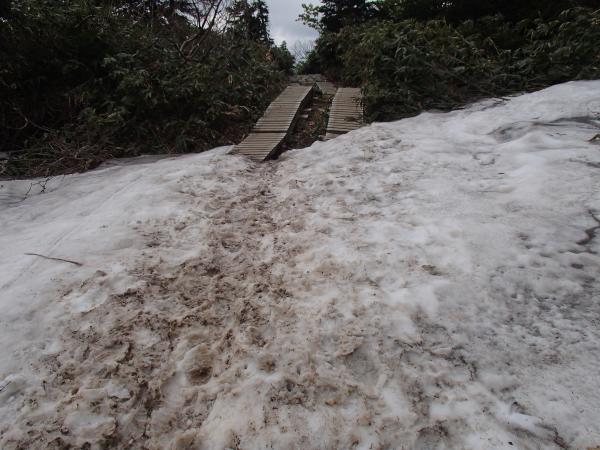 - 雪もかなり少なくなっている、観光新道は殿ヶ池避難小屋前後、蛇塚から黒ボコ岩手前に雪が残っている