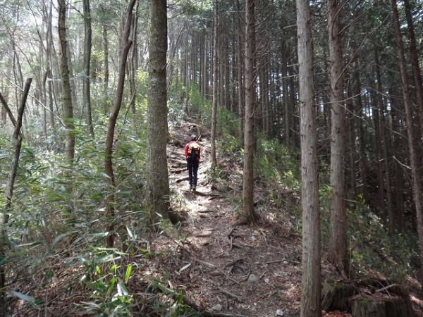- 登山口直後の急登を過ぎればなだらかなアップダウンになる。ところどころ木の根が広がっているので躓かないように気を付ける。後半で一部不明瞭な部分もあるのでテープやふみ跡をしっかりチェックしながら歩く必要がある。