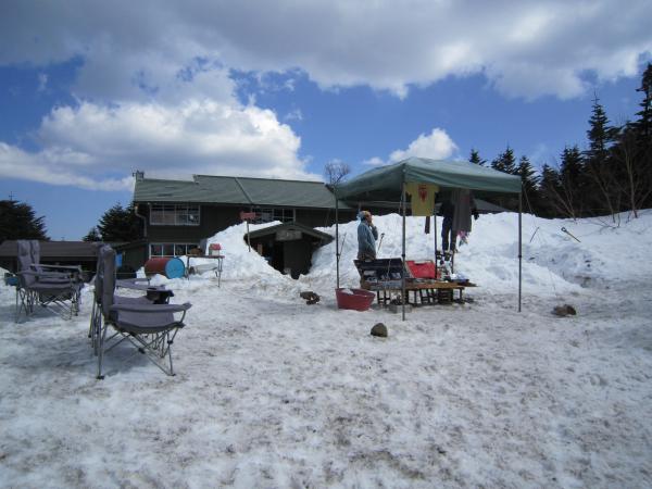 木に激突しないように、、と祈りながら歩いていくとほどなく蓼科山荘に到着。