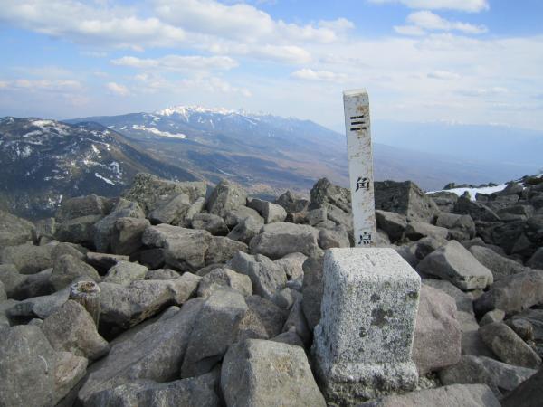 頂上の展望は360度!ちょっと霞んではいましたが八ヶ岳、南アルプス、御岳、北アルプスともののみごとに堪能できました。