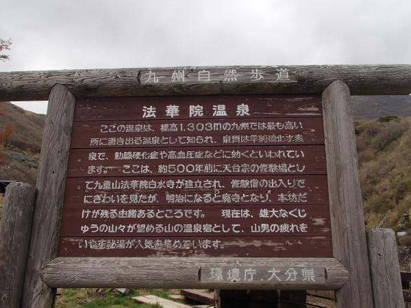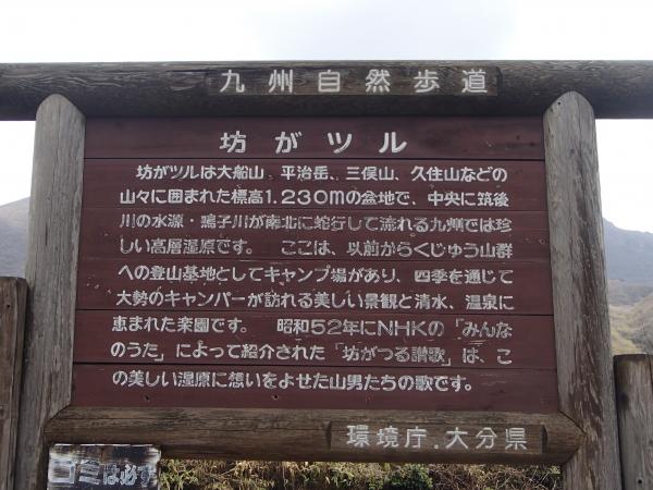 - 長者原~(60分)~雨ヶ池~(60分)~坊がツル~(10分)~法華院温泉山荘~(60分)~北千里通過、スガモリ越~(90分)~長者原