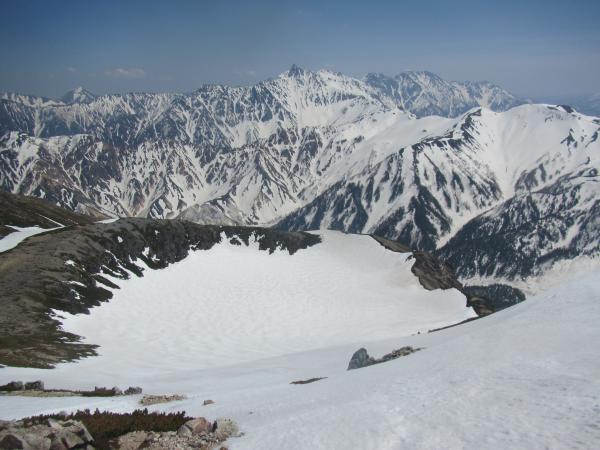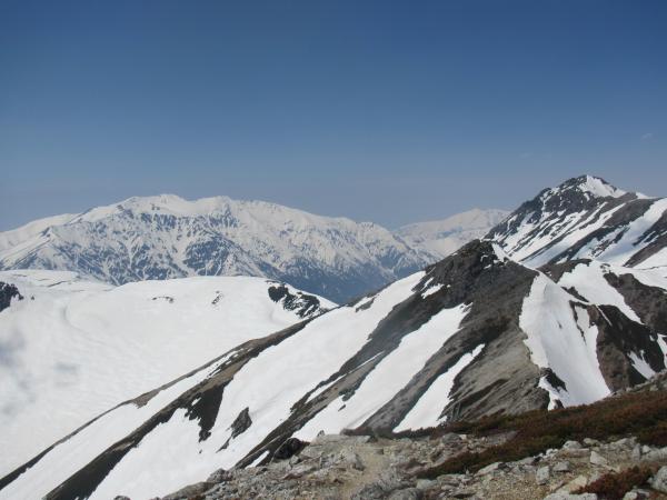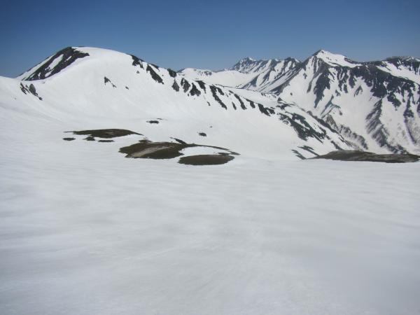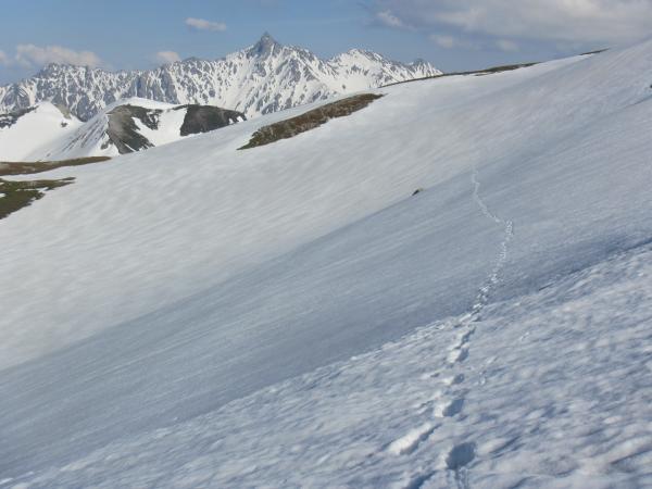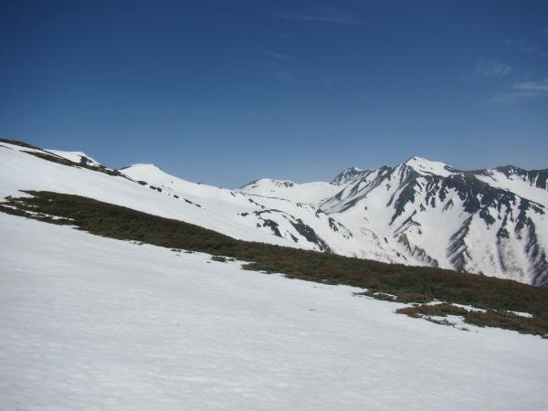 ■ 鷲羽岳 … ほぼ夏道で登ることができます。下りは雪渓上をショートカットできます。