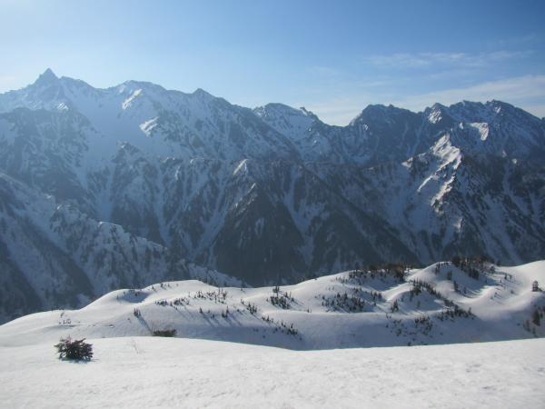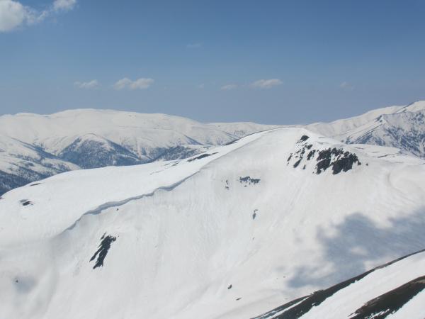 ■ 大ノマ乗越 … 稜線直下は小さい雪壁となっていますが、スキーのトレースがあり、労せず上がれました。